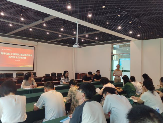 为明确新生班主任的工作职责,提高工作能力,确保2025年迎新工作的顺利开展,9月10日下午,我院在敬业楼111会议室举行了2025级新生班主任培训会。学院党委副书记蒋丽洁、新生辅导员、新生班主任、班主任助理参加了会议。