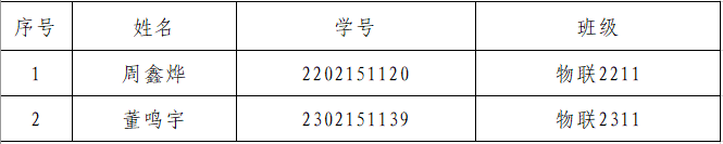 根据学校相关通知要求,经学生个人申请,学院评审小组评审,现决定推荐周鑫烨、董鸣宇等2位学生参评学校2025年黄宝华奖助学金,名单公示如下: