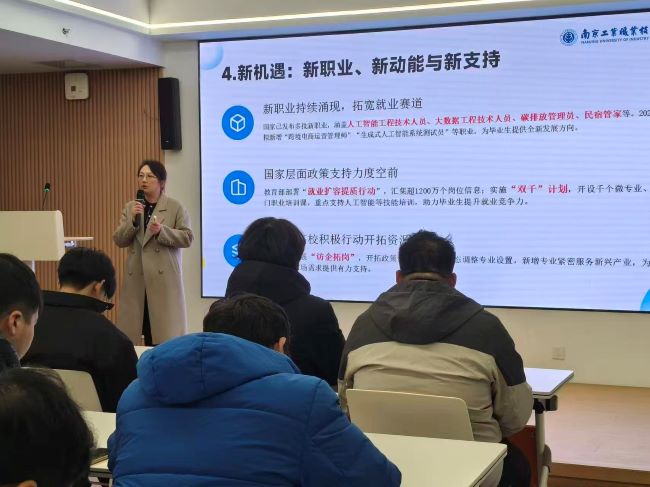 讲座中,陈赛珊结合最新行业数据,对各专业对应的就业方向展开深入分析。针对电子信息工程专业、集成电路工程专业核心领域,她指出:在相关产业面临发展挑战的背景下,该领域部分岗位人才需求旺盛,应届生薪资水平也高于传统工科领域;同时,围绕物联网工程技术、现代通信工程等关联专业,她梳理了这些专业对应的岗位能力要求,助力学生清晰了解不同专业可延伸的职业路径。