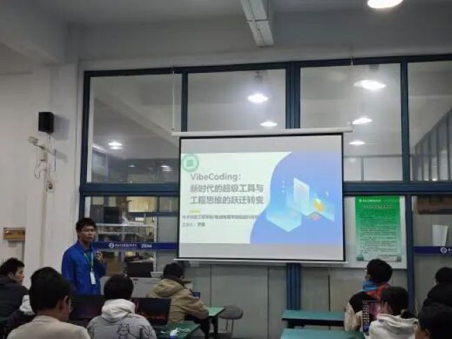 为引导学生适应从“代码实现”到“系统设计”的开发者角色转型,12月17日,电子信息工程学院/集成电路学院举办VibeCoding技术科普活动。本次活动旨在通过理论讲解与实践探讨,帮助同学们理解AI时代的开发新范式,掌握VibeCoding方法论,从而在技术演进中提前布局,增强面向未来的核心竞争力。