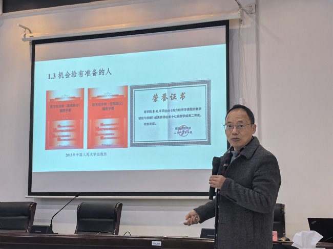 1月26日下午,南京师范大学教授、硕士生导师、师德先进个人、江苏省中青年骨干教师李政军教授以《课程建设的经验与反思》为主题,系统分享了从个人深耕到团队协作打造高水平课程的经验,从教育本质出发,探讨了在技术快速发展的背景下如何坚守课程教学的质量底线,为我院课程及教材建设提供了宝贵的实践参考。