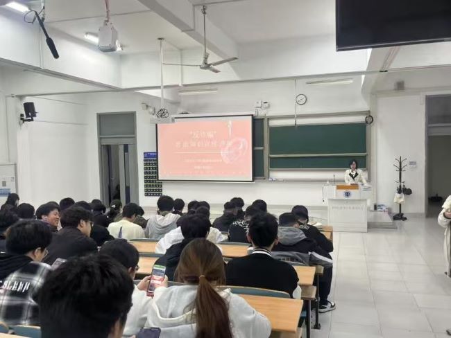 宋律师立足法律专业视角,用通俗易懂的语言,对当前大环境形势进行分析,介绍了常见诈骗类型及其概念界定,提出了可操作的防范诈骗方法和应对途径。宋律师指出,当前诈骗的高频类型包括冒充公检法、刷单返利、虚假投资理财、网络贷款、冒充客服、交友诈骗及钓鱼链接等。在防范诈骗方面,她向同学们分享了“三不一多”防诈黄金法则,即不透露个人信息、不点击未知链接、不轻信陌生来电和转账汇款多核实。如不慎遭遇诈骗等相关信息的误导,发现后应立即停止操作、全面保存证据、切勿删除信息,通过法律途径维护自身合法权益。宋律师还做出了防诈骗的总体重要提示,要保护好个人信息、做好物品管理,切勿出租、出售、出借个人名下的银行卡和电话卡,若遇到陌生人提出可疑的、涉及财产的请求,坚决拒绝。会议最后,她提醒全体学生高度重视反诈,牢记防范要点,主动远离诈骗陷阱,同时带动身边同学共同筑牢反诈防线。